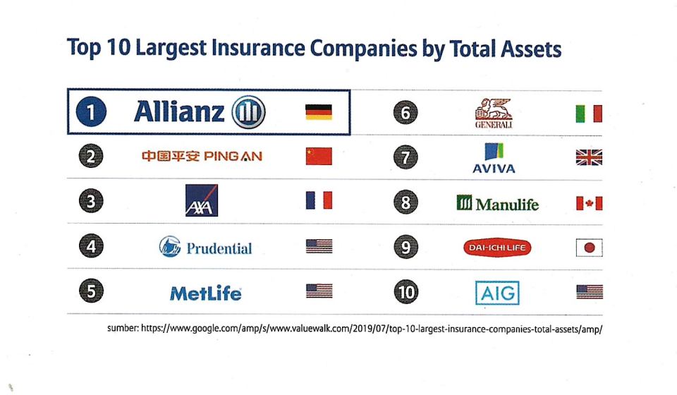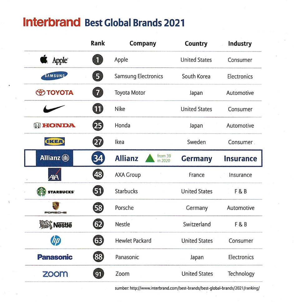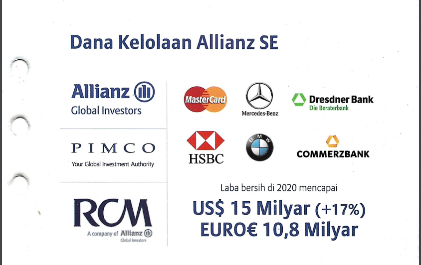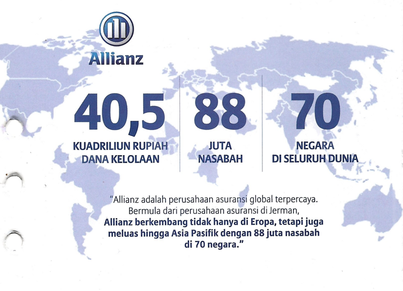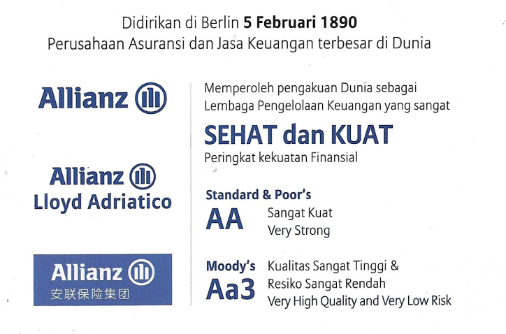 Allianz merupakan salah satu perusahaan global terbesar yang bergerak di bidang layanan asuransi dan manajemen aset. Telah berdiri sejak 1890 di Jerman sebagai perusahaan yang sangat berpengalaman dan mempunyai posisi finansial yang kuat.